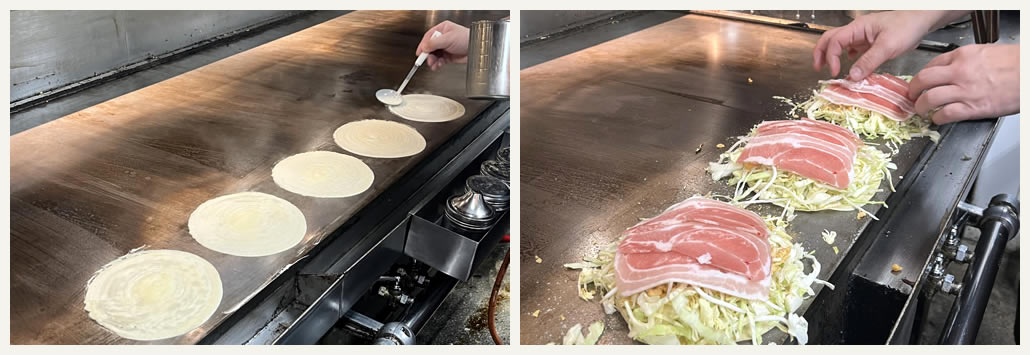 店舗と同じ鉄板で職人が一枚一枚丁寧に手焼きしています。